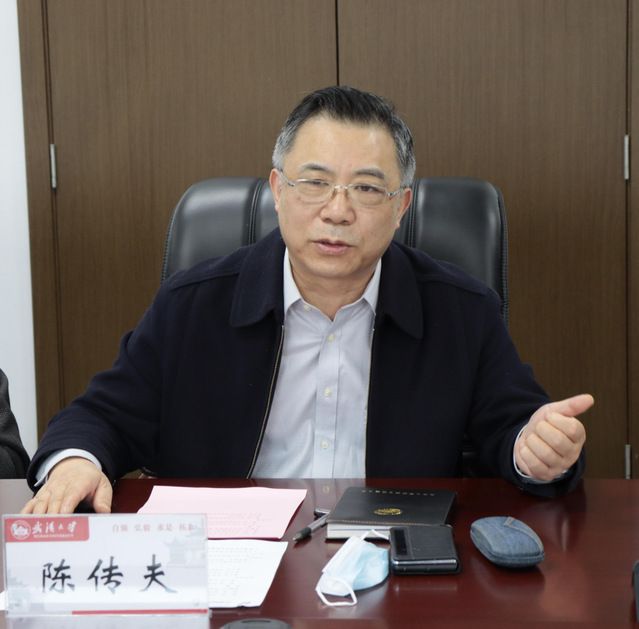 陈传夫院长对胡弘弘院长一行的到来表示热烈欢迎,并简要介绍了武汉大学近年来在研究生招生、培养、学位、管理等方面的经验和做法。