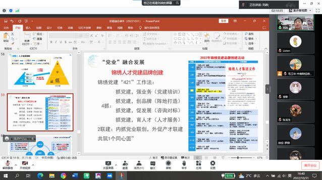 最后,刘政老师讲述了锦绣人才集团在“党业”融合和“双链”融合方面的重要实践。锦绣人才集团通过其独到的人才发展思路为多个产业的大型企业输送了众多人才,积极推动了“双链”融合发展,同时以党建“421”工作法和搭建锦绣智慧党建云平台等方式,在“党业”融合方面取得了较大成效。通过了解锦绣人才集团的成功实践,同学们对“‘党业’一体创品牌,‘双链融合’促发展”有了更深入的认识。