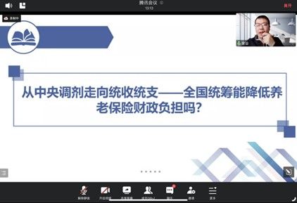 (通讯员 魏晨雪 郑琪琦)2022年11月3日下午14:30,由米兰电竞·(中国区)研究生院、党委研究生工作部和中南财经政法大学研究生会主办,公共管理学院研究生会承办的第235期“文澜大讲堂”之新锐讲坛在线上成功举办。此次讲座以“从中央调剂走向统收统支——全国统筹能否降低养老保险财政负担”为主题,特邀劳动与社会保障系曾益老师主讲,公共管理学院2022级全体硕士研究生参会学习。讲座由公共管理学院研究生会学术部干事汪翠翠同学主持。