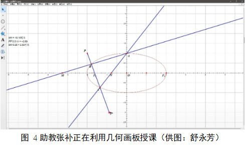 采用多元创新形式,打造优质课程体验。团队成员反复研究高中数学考纲、查阅各种参考资料、结合自身学习经验,以本次云支教发起人田腕君联合编撰的《高考归来话数学》为蓝本,精炼课程结构,在教学体系上自成一派。此外,来自西安电子科技大学微电子学院的2022级研究生张补担任本次云支教的助教,面对枯燥晦涩的高中几何问题,他积极探索“几何画板”这一授课工具,用动画的形式辅助教学,让学生能够获得更直观的解答,当其第一次在课程中使用该软件时,学生孙子翔感叹“这个软件可以这么直观地展示动图,好神奇哦”。