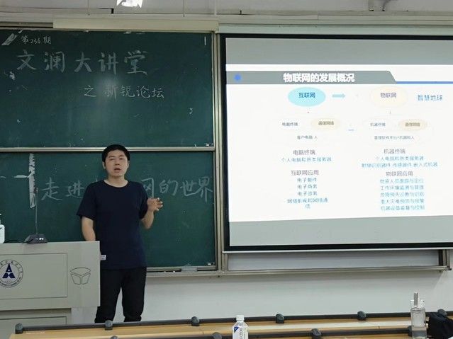 本次讲座的主题为“走进物联网的世界”,主讲嘉宾为信息与安全工程学院的陈子鹏老师。讲座伊始,主持人对此次活动的背景、目的及主讲嘉宾陈子鹏老师进行了介绍。