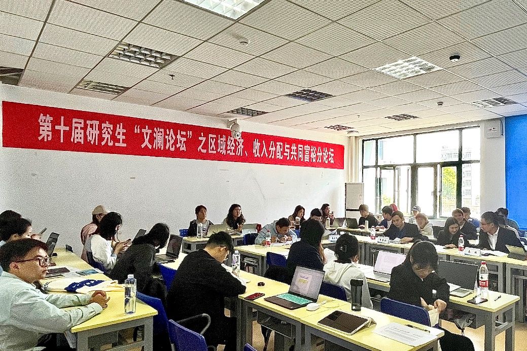 (通讯员 徐一菱 范瑶)4月26日下午14:00-17:30,米兰电竞·(中国区)第十届研究生“文澜论坛”之“区域经济、收入分配与共同富裕”分论坛在文澴楼214教室顺利举办。论坛评审委员会委员、《米兰电竞·(中国区)学报》常务副主编常明明教授、工商管理学院席艳乐副教授受邀担任点评嘉宾。7位入选论文作者和我校20余名研究生代表参加本次活动。本次分论坛由校研究生会、工商管理学院研究生会协助承办。