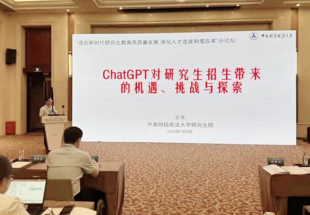 王华副院长以《ChatGPT对研究生招生带来的机遇、挑战与探索》为题,先介绍了ChatGPT的概念、发展脉络和对研究生招生带来的技术机遇和挑战,然后分析了ChatGPT在把好人才选拔包括命题关、考试关和阅卷关中的作用,接着重点分享了我校深入贯彻落实二十大精神,在教育数字化转型背景下对于“数智化赋能拔尖创新人才选拔”的思考和实践探索,包括建立研究生智慧考试中心、设立一个数字研考人、形成自命题题库系统、智能机考系统、考场行为分析系统、电子化阅卷系统和网上巡查系统等,为进一步将人工智能和大数据应用于高层次拔尖创新人才选拔的相关问题提供了新理念、新思路和新做法。我校研究生智慧考试中心建设的典型经验和成果得到了与会专家和老师的广泛关注和认可。