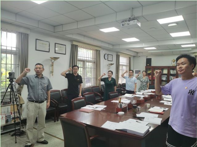 活动伊始,支部全体党员共同重温入党誓词,程余庆同志领学《中国共产党章程》第四章,全体党员在重温入党誓词和党章中感悟入党初心。