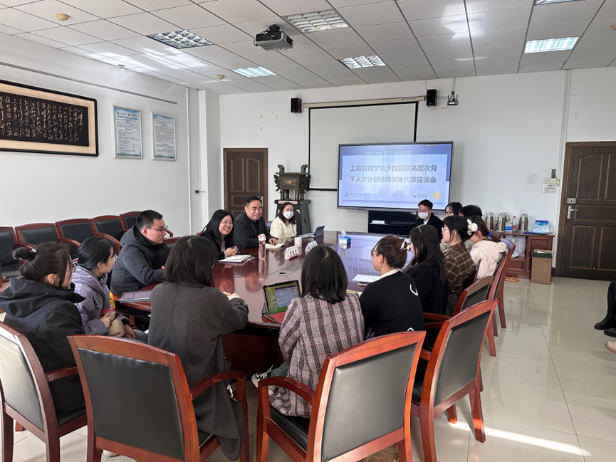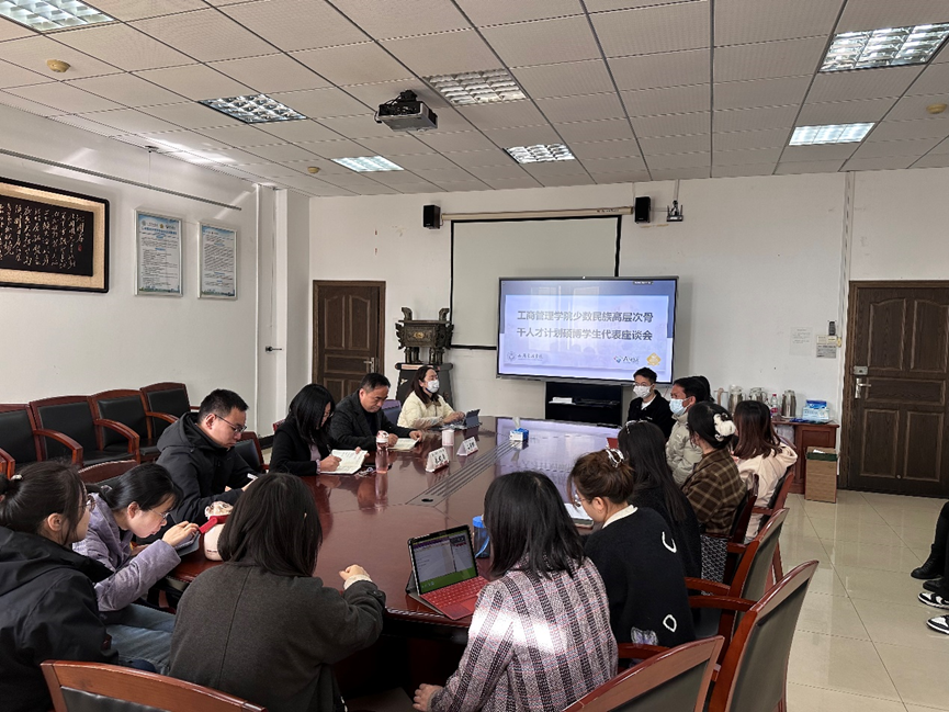 (通讯员:江为民 刘钰荣 摄影:刘钰荣)2023年11月16日,工商管理学院少数民族高层次骨干人才计划硕博学生代表座谈会在文泉楼北407会议室顺利召开。工商管理学院副院长石军伟教授、党委朱艳平副书记、研究生工作办公室姜倩倩老师、江为民老师参加座谈会。座谈会由工商管理学院副院长石军伟教授主持。