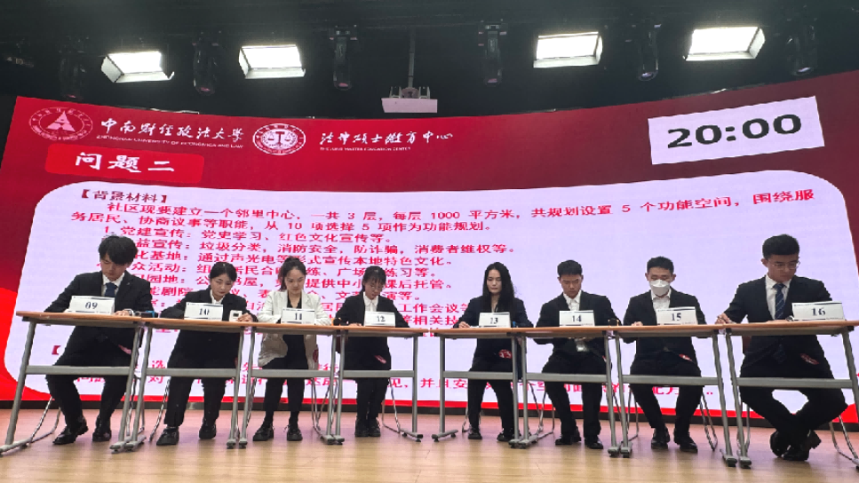 新闻网讯(通讯员 余安琪 学生通讯员 王济安)为深入学习贯彻党的二十大精神,深化同学们对公务员职业前景的认识、培养公考应试能力,法律硕士教育中心于11月30日下午在文济楼报告厅成功举办了“济世杯”系列就业指导活动之中南八校选调生模拟面试邀请赛。武汉大学法学院党委正处级副书记胡伟,华中师范大学法学院党委副书记兼纪检委员万枞,中国地质大学(武汉)公共管理学院党委副书记龚丽,我校法学院党委副书记兼法律硕士教育中心学生党总支书记易育,华中农业大学法学院辅导员艾俊,我校法律硕士教育中心辅导员余安琪、马晨娇和周诗琪,工商管理学院校友叶灵鹏,校外专家评委曾庆昊和李俊良参与本次邀请赛。