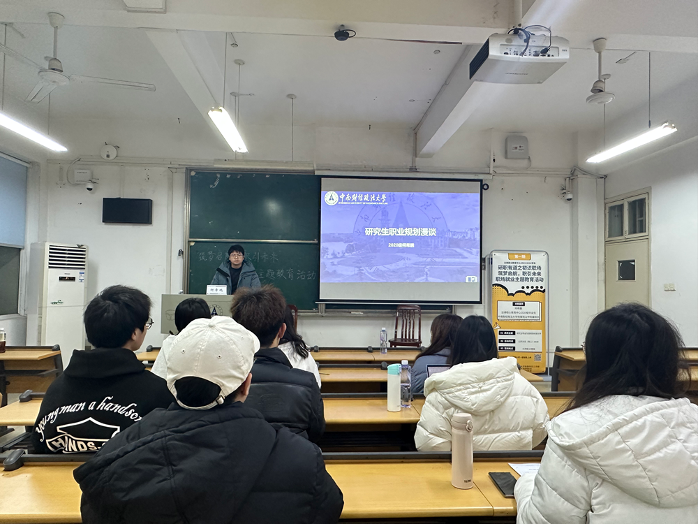 柯希鹏从自我认识、探索世界、目标确立、求职准备、求职复盘几个角度进行经验分享。他认为,同学们要学会认识自我、扬长避短、关注时政、了解产业发展动态,从长远角度把握职业方向。他建议,在简历制作方面要学会凸显优势信息、理顺信息条理,在求职准备方面要做好信息整合,包括求职单位的报名、面试形式和时间、不同单位的类型和偏好等。在答疑阶段,同学们踊跃提问,柯希鹏就同学们提出的实习地点选择、实习方向选择、考证等问题进行了一一解答。