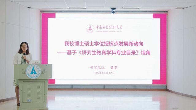(通讯员:宋昀宜 孙千芊 摄影:陈俊羽)为深入学习贯彻习近平新时代中国特色社会主义思想和党的二十大精神,全面提升学校研究生教育教学业务干部的政策水平和业务能力,4月12日下午,学校教科研业务干部专业能力提升专题培训班“研究生教育教学论坛”在文潭楼308会议室召开。清华大学博士生导师王传毅副教授作为讲座专家受邀出席本次论坛。研究生院院长胡弘弘、党委研究生工作部部长兼副院长肖翠祥、研究生院副院长王华、周尧、黄雯、董慈蔚出席会议。各学院(中心)分管研究生教育工作的领导、研究生工作人员以及研究生院、党委研究生工作部全体工作人员参会。论坛由胡弘弘院长主持。