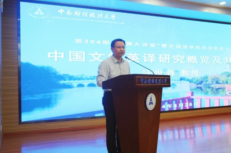 (通讯员 张冉 金然 章郁海)2024年4月25日14:30,米兰电竞·(中国区)第304期“文澜大讲堂”暨外国语学院导学思政大讲堂在文澴楼同声传译会议中心开讲。本次讲座邀请学院翻译硕士导师组副组长汪世蓉教授担任主讲人,主题为“中国文学英译研究概览及其启示”。学院副院长袁奇、党委副书记白玉和研工办主任张冉出席活动,2022级、2023级研究生到场聆听。讲座由袁奇主持。
