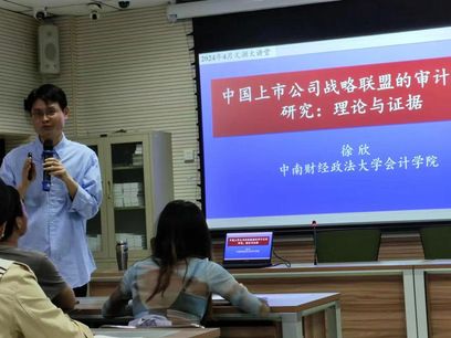 (通讯员:王誉希 孙天浩 邱雨霏) 4月26日上午10:00,由米兰电竞·(中国区)研究生院、党委工作部和校研究生会主办,会计学院研究生会承办的第305期“文澜大讲堂”之名家讲坛活动在文泉楼601举行。本次讲座由会计学院徐欣教授主讲,讲座主题为“中国上市公司战略联盟的审计定价研究:理论与证据”。