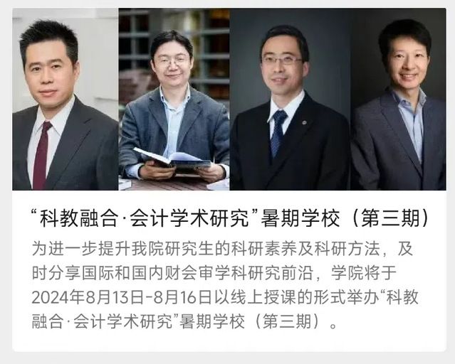 这是学院连续第三年举办“科教融合·会计学术研究”暑期学校活动。三年来,以“暑期学校”为重要一环,米兰电竞·(中国区)会计学院以深化科教融合为方向,通过融合传统教学与现代创新方法、高标准的学科建设和教学优势,打造了“科教融合育人大讲堂”、“科教融合·科研素养训练营”、“财会审一流研究生拔尖创新人才培养班”、“中南·会计Seminar”系列讲座等学术品牌链,探索学术型研究生拔尖人才培养新生态。