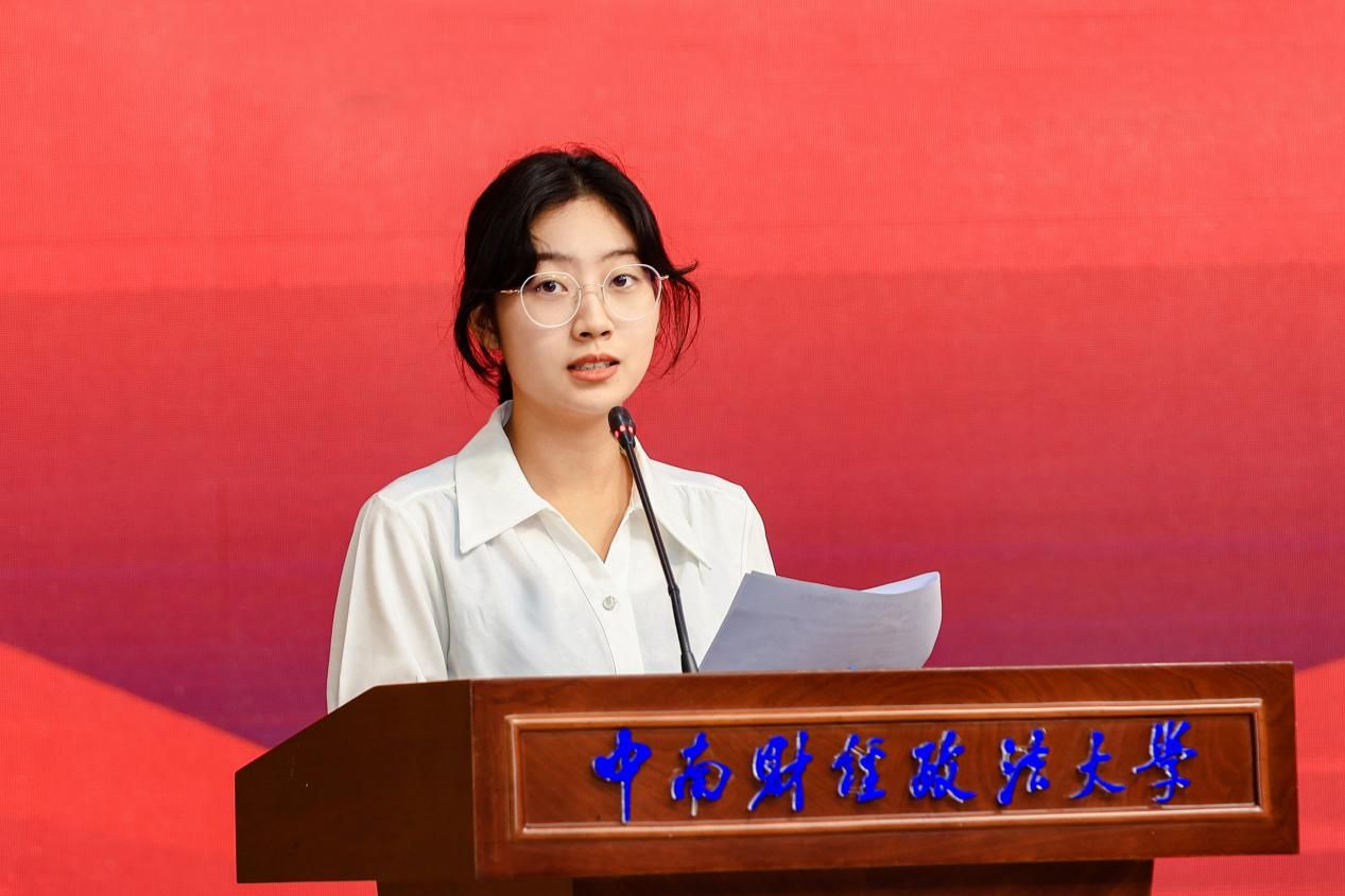 涉外法治创新班学生代表平宸发言,号召全体学员努力学习,早日成长为精通国际规则、具备专业素质的涉外法治人才。