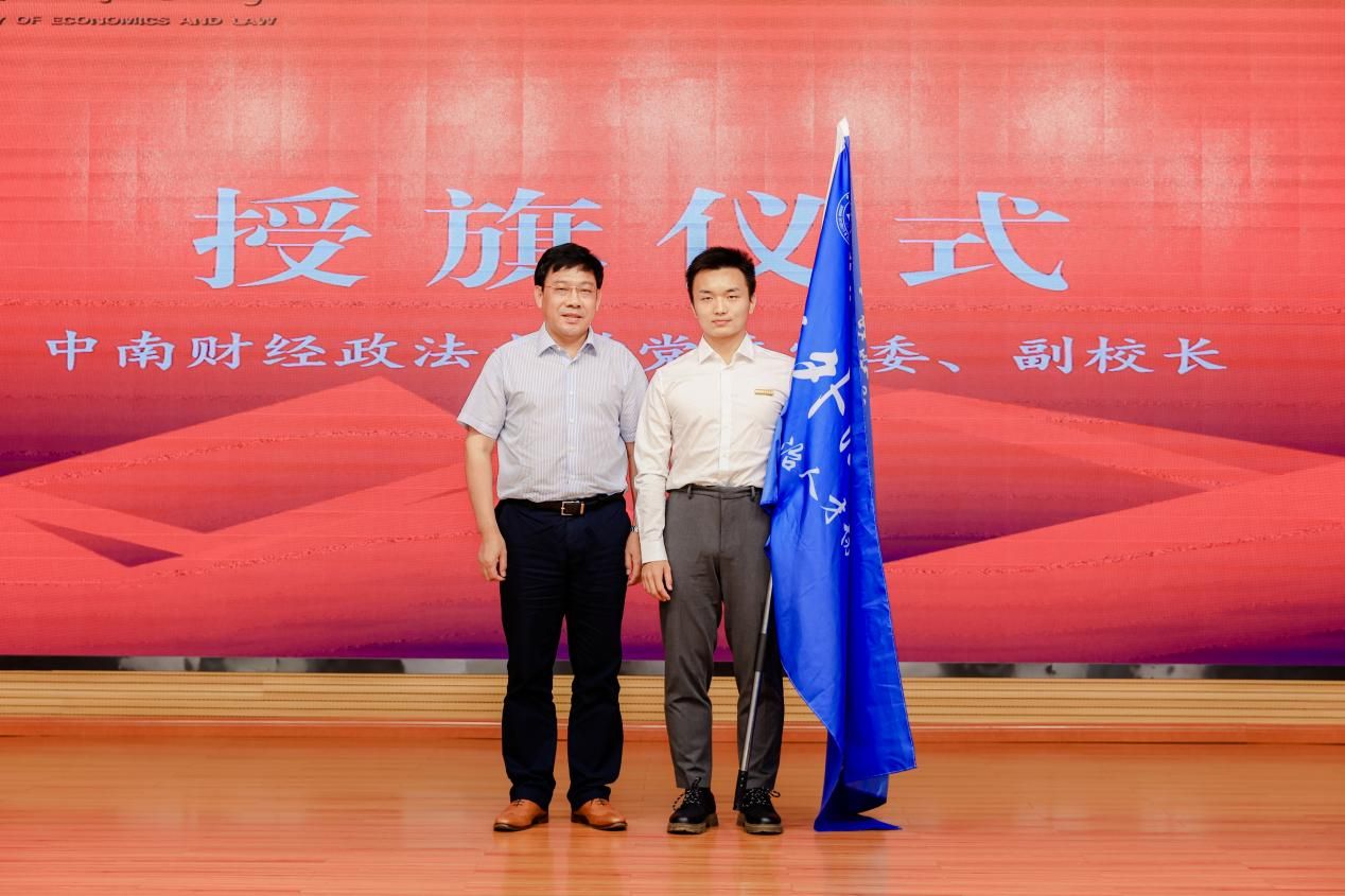校党委常委、副校长刘仁山为“涉外法治创新班”授旗