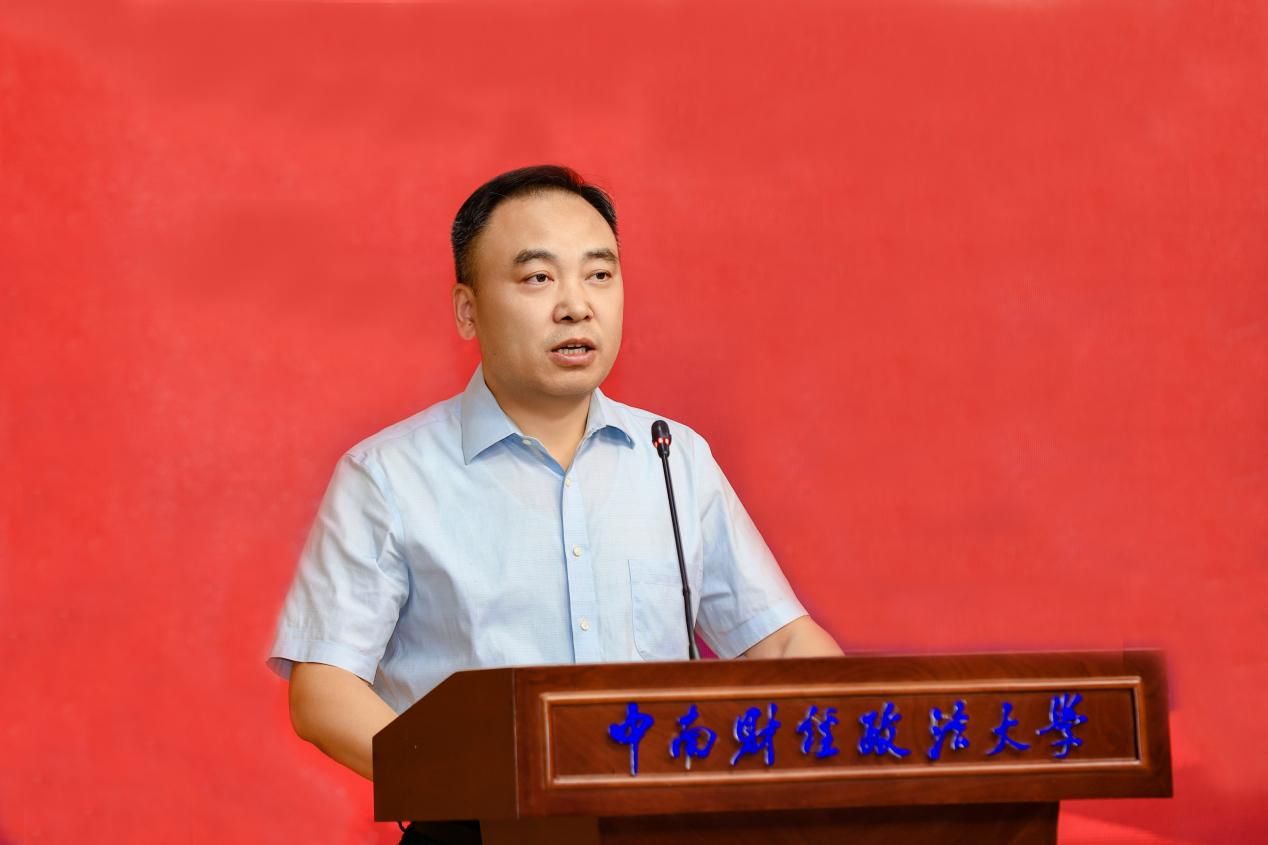 校党委常委、副校长刘仁山为“涉外法治创新班”授旗,法学院院长、国家治理学院院长陈柏峰介绍了创新班的培养方案。随后,涉外法治创新班学生代表平宸发言,表达了对学校提供学习平台的感激,并号召全体学员努力学习,早日成长为精通国际规则、具备专业素质的涉外法治人才。