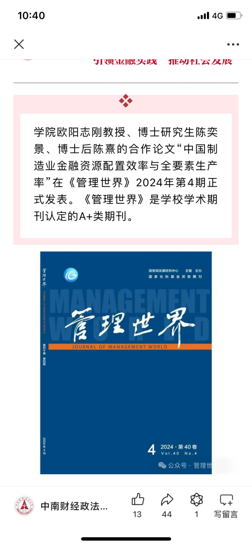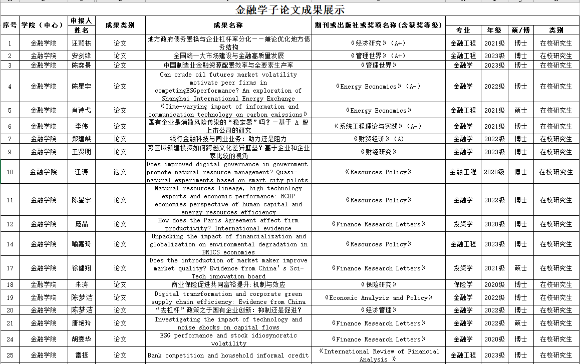 3.激发科研创新活力。①营造良好科研氛围,提升学子科研能力。学院长期鼓励学生参与科研,通过举办多项科研讲座、研讨会、创新竞赛等活动,为研究生提供先进实验设备、图书资源、数据库访问等科研支持,营造浓厚的科研氛围。在学院优秀导师团队的精心指导下,数十名研究生在《经济研究》《管理世界》等国内顶级期刊上发表论文,研究生的科研能力显著提升。②鼓励研究生参加论坛交流学习。学院鼓励研究生走出校门,积极参加学术论坛、行业论坛交流学习,同时提供资金支持和智力支持。