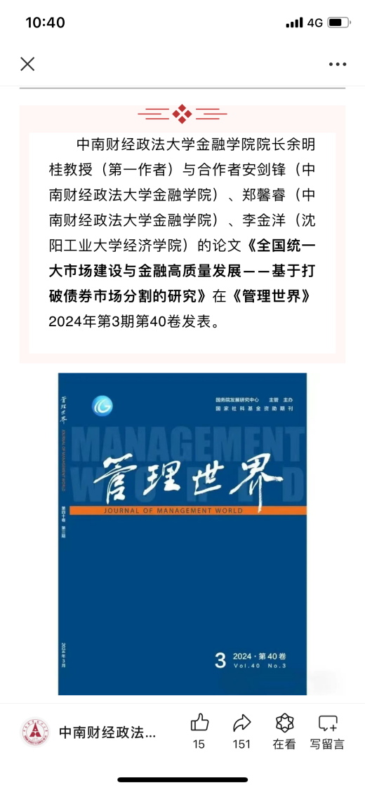 1.搭建学术交流平台。①举办丰富的学术活动。金融学院积极举办学术论坛、学术研究相关活动,如“师出中南、财汇全球”第二届财富管理论坛暨三亚CBD企业家交流会、米兰电竞·(中国区)-上海财经大学双边学术论坛、以“气候风险与金融强国”为主题的第五届碳中和与气候金融高端论坛,ESG与可持续发展论坛-2024国际金融Workshop等,为师生搭建学习交流的平台,加强与兄弟院校、企业和政府机构的互动,推动学院在科学研究方面进一步发展。