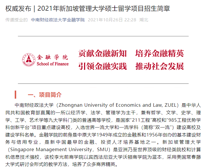 3.推进国际化办学,培养国际化人才。①金融学院长期开展国际合作办学项目。学院高度重视国际化办学,拥有丰富的国际合作办学经验,与英国拉夫堡大学商学院、坎特伯雷大学商法学院、雷恩商学院、新西兰坎特伯雷大学、新加坡管理大学李光前商学院长期开展联合培养项目。②强化联合培养,拓展国际视野。学院鼓励学子走出校门、走出国门,积极参与国际化联合培养项目。并在校内多次举办留学生专题讲座、学术沙龙、“Machine Learning and Finance”系列讲座等,邀请海内外知名学者到访金融学院,为研究生开设讲座,深入交流学习。