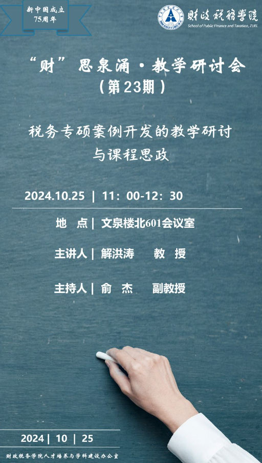 主讲人:解洪涛教授,财政税务学院税务专硕中心主任