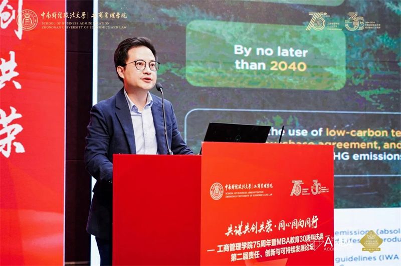 工商管理学院院长兼MBA教育中心主任吴海涛教授发布我校MBA教育ESG报告(2024)。吴院长从理念和基本框架两个方面,对学院这一年发展过程中各项指标的实现来解析报告。在商学院社会评估框架指标即A(Aim:目标力)C(Conduct:行动力)T(Target:达成力),重点汇报作为绿商,是如何坚持可持续发展目标,以及对SDG(SustainableDevelopmentGoals)目标的回应。最后从环境管理、社会责任、治理机制三个方面总结了未来发展目标与举措。