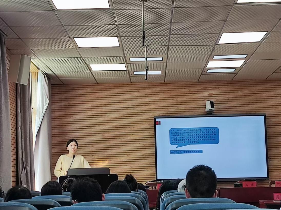 最后,郭老师告诉同学们,即使目前没有就业方向也不要焦虑,多去尝试各种活动,勇于尝试新东西,在参与的过程中提升自己,在尝试的过程中发现自己,给自己提供更多选择的可能,并且要对自己的期望进行合理规划,不断尝试,全面发展。