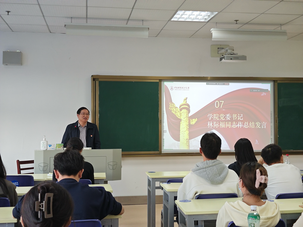 最后,林际福书记作总结发言。林书记充分肯定了此次活动的成效,并指出支部共建活动为师生搭建了思想交流和资源共享的平台。林书记鼓励全体师生党员在未来的学习和科研中要始终不忘初心,积极参与社会服务与科研创新,践行新时代共产党员的责任与担当。