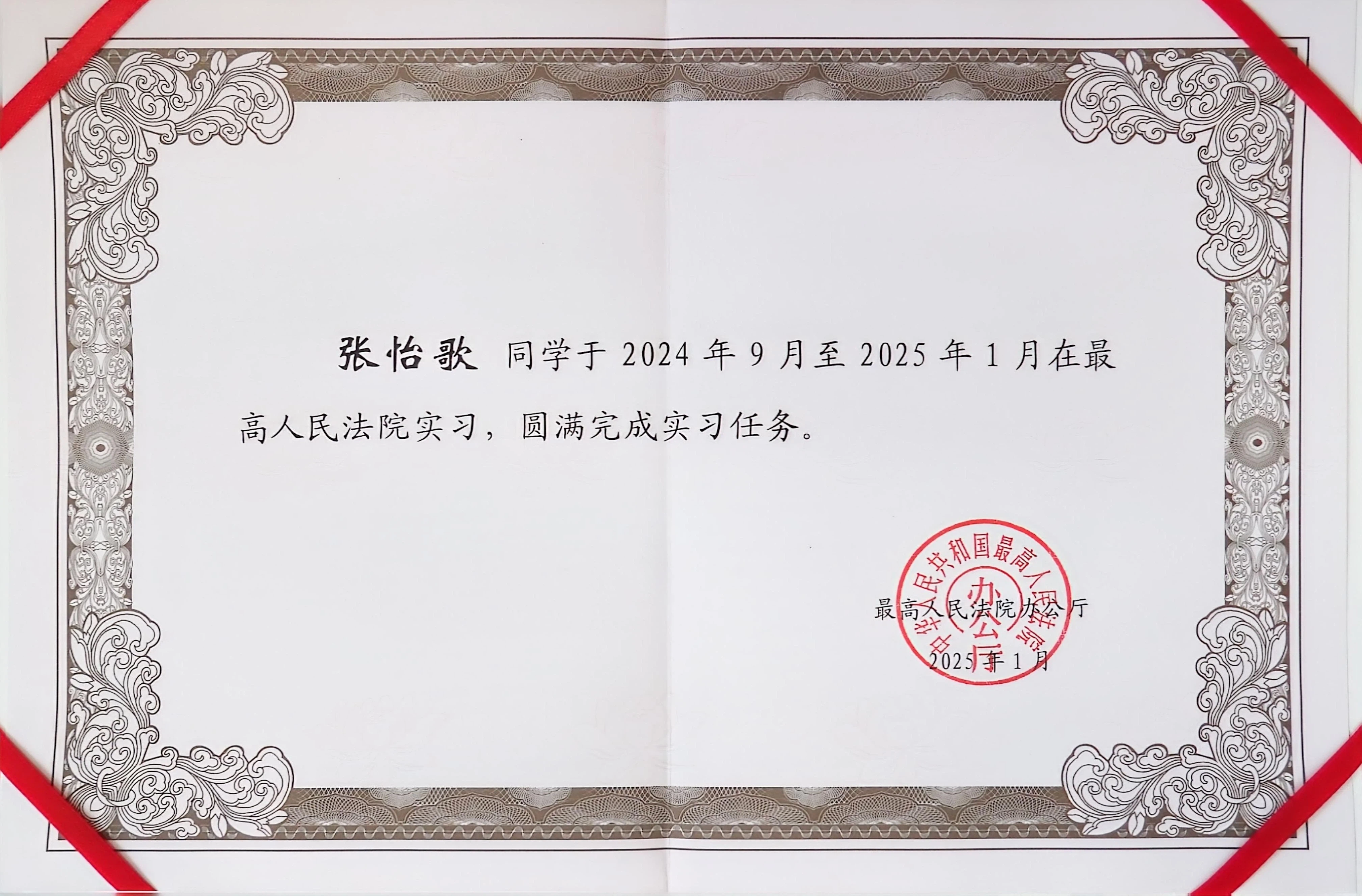 张怡歌同学表示:在最高人民法院实习的四个月,受益良多、此生难忘。借此机会,想分享四点感悟。