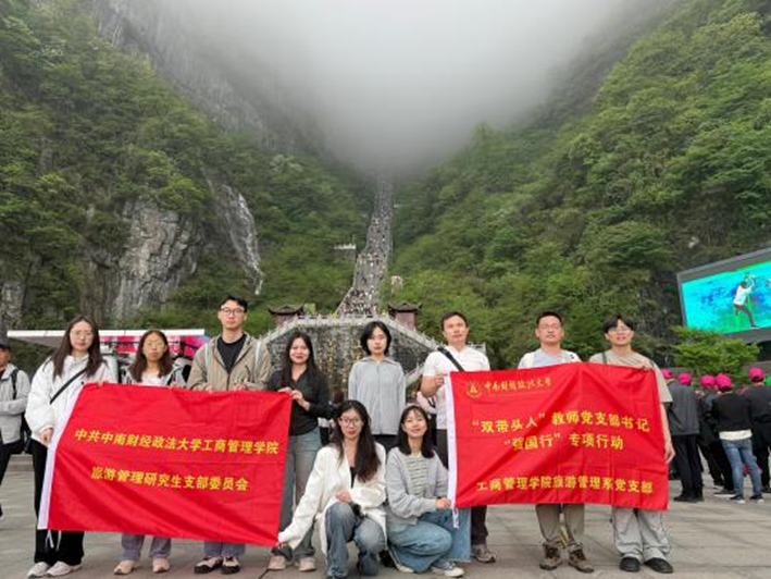 (通讯员 江为民 潘怡婷 安佳慧)为深入学习贯彻习近平生态文明思想,旅游管理研究生党支部于2025年4月18日至21日赴张家界参加第六届全国旅游生态与生态旅游学术研讨会,同步开展“党建+学术”双融共促研学实践活动。在邓爱民教授指导下,由7名研究生党员(含4名博士研究生、3名硕士研究生)组成的学术先锋队,以立体化党建活动探索生态文明建设实践路径。