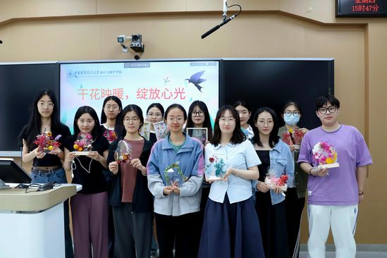 (通讯员 吴志伟 肖泽)为帮助学生缓解学业压力、舒缓焦虑情绪,提升动手实践能力与艺术审美素养,4月17日15时,统计与数学学院在文波楼智慧教室205举办“绽放心光,干花映暖”减压手工活动。