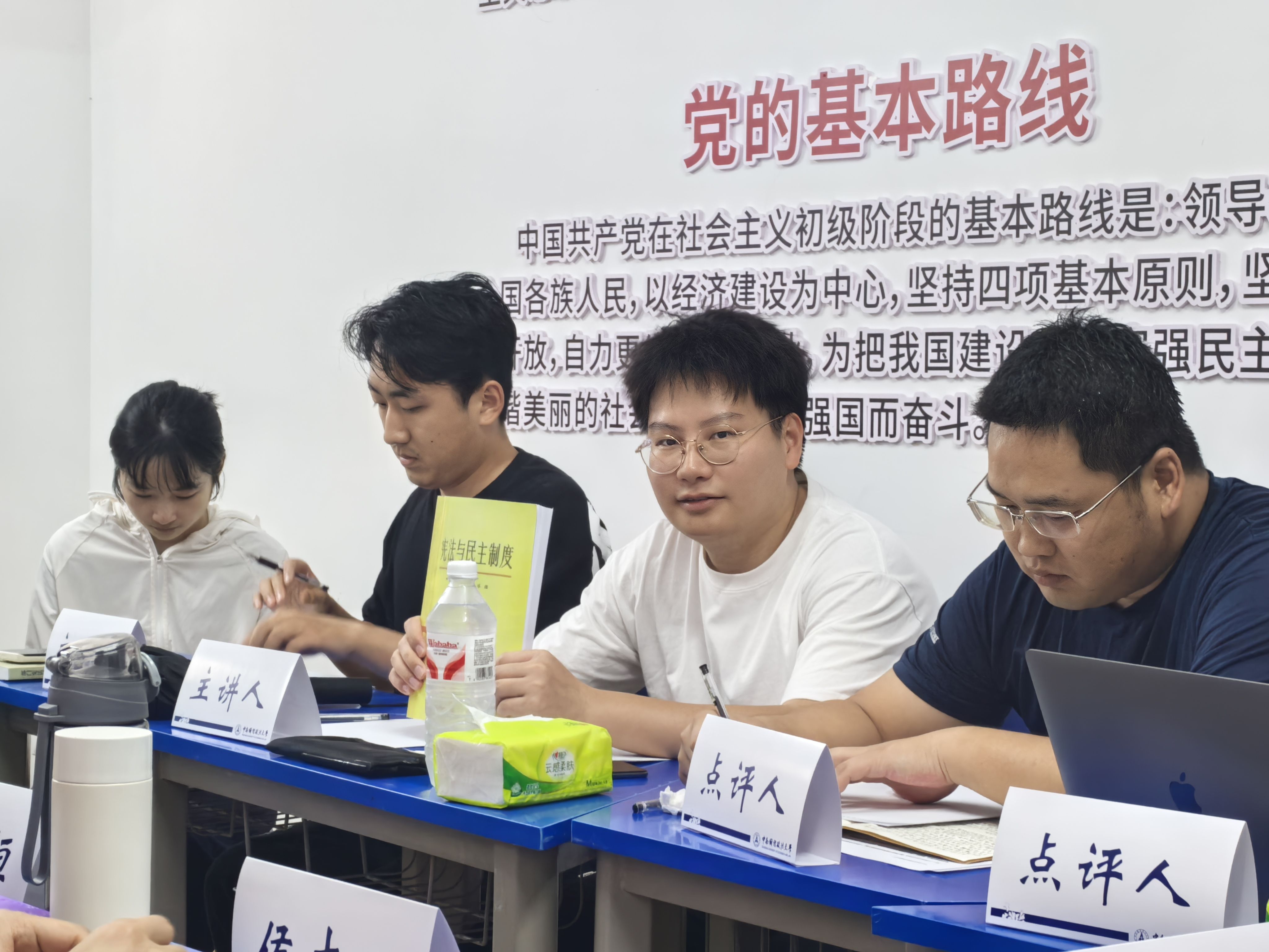 最后,2023级宪法学与行政法学博士研究生岑梓珩进行点评与总结,指出刘家晞同学探讨了宪法与民主关系及我国人民代表大会制度,指出其在阐述时存在理论空白,未充分展现相关学者理论脉络及背后思考,而对于范海天同学的分享,认为对于部分宪法的研究对构建法律体系、回应国家发展面临问题意义重大,需不断探索整合路径,从基本问题出发逐步构建体系。同时鼓励与会同学从具体小问题切入宪法研究,结合阅读积累,提升研究能力,为宪法研究贡献力量,本次读书分享会圆满结束。