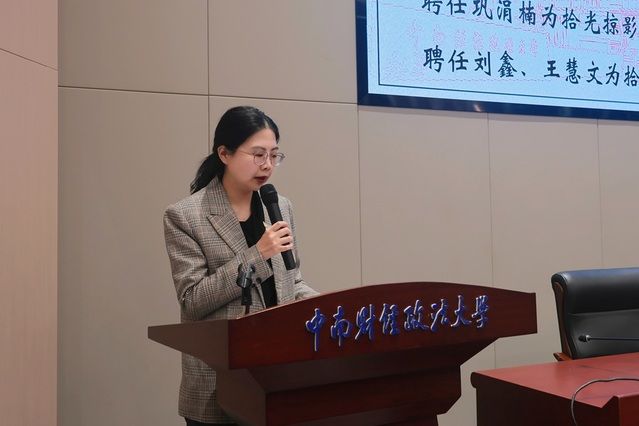接下来,《中南研语》编辑部执行主编陈梓钰发言。她代表《中南研语》编辑部对新成员的加入表示诚挚欢迎,并从刊物定位、栏目设置及近年来的创新探索等方面,对《中南研语》编辑部进行了详细介绍。同时,她围绕“坚持思想引领、推进文化建设”“保障办刊质量、创新形式内容”“完善制度规范、加强团队建设”三个方面,分享了刊物未来发展方向和工作规划的思考,期望与全体成员携手同心、积极作为,共同推动《中南研语》在传承中创新、在突破中成长,为校园文化建设与研究生思想交流持续贡献力量。