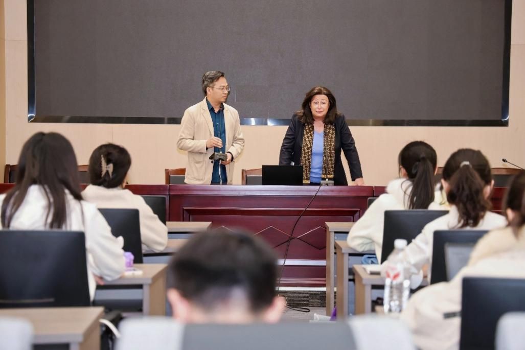 课程第一阶段,Tiziana Chiusi女士率先与同学们交流分享。她鼓励大家既要扎实掌握法律专业知识,也要深入了解不同国家的法律文化,培养严谨的法律思维,为未来投身涉外法治工作做好充分准备。我院民商法学系讲师、德国科隆大学法学博士陈大创担任现场翻译。