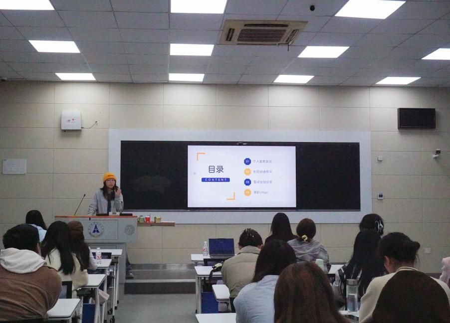 吕成慧结合自身求职经历,从秋招心路历程、面试实战准备与技巧等方面,为大家带来了一场干货满满的求职经验分享。她首先回顾了自己在广交会、高校实习及赴日交换学习期间的成长与收获,呼吁大家多实习,在实践中锤炼沟通协作、应急应变等综合能力,为职业发展筑牢根基。谈及秋招历程,她坦诚分享了自己投递三十余家企业、屡遭挫折却坚持不懈的奋斗经历,着重强调面对挫折时稳住心态至关重要,鼓励同学们树立正确就业观,以坚韧不拔的毅力面对求职路上的困难与挑战。同时,她详细拆解了面试全流程技巧,从企业调研、简历优化、模拟演练到沟通逻辑、问题应答等方面倾囊相授,并梳理了常见求职问题及应对思路,提醒同学们善用多元渠道获取招聘信息。最后,吕成慧以“找不到工作不会不幸福,过的不是自己想过的人生才是”的暖心寄语,激励大家坚定理想信念、勇于拼搏进取。