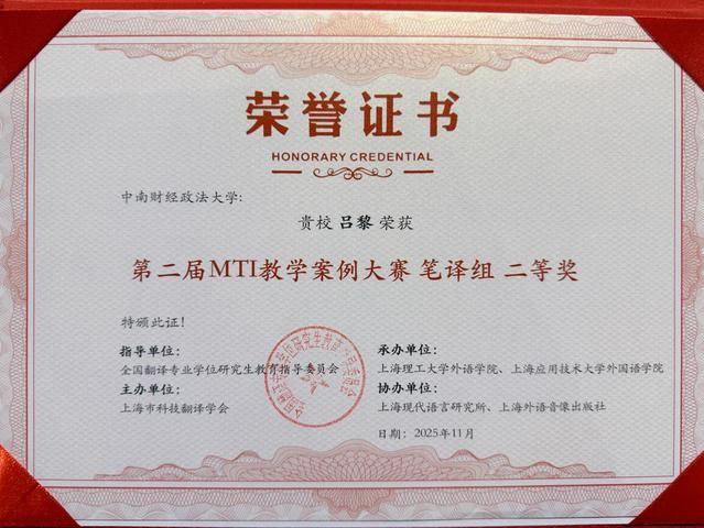近日,MTI案例教学研讨会暨“第二届MTI教学案例大赛”颁奖典礼在上海应用技术大学隆重举行。大赛由全国翻译专业学位研究生教育指导委员会指导,上海市科技翻译学会主办,旨在推动全国MTI教育高质量发展,促进教学改革与创新案例的交流共享。大赛共设笔译、口译、翻译技术、翻译项目管理四个组别,经过多轮专家评审,评选出一、二、三等奖及优胜奖。此次大赛吸引了来自全国122所MTI院校的227份教学案例参赛。经大赛评委会初评、复评,我校外国语学院袁奇教授团队申报的案例《讲好中国品牌故事:企业外宣文本汉英翻译》及吕黎老师申报的案例《聋人应急语言服务国际指南翻译教学案例》荣获笔译组二等奖。