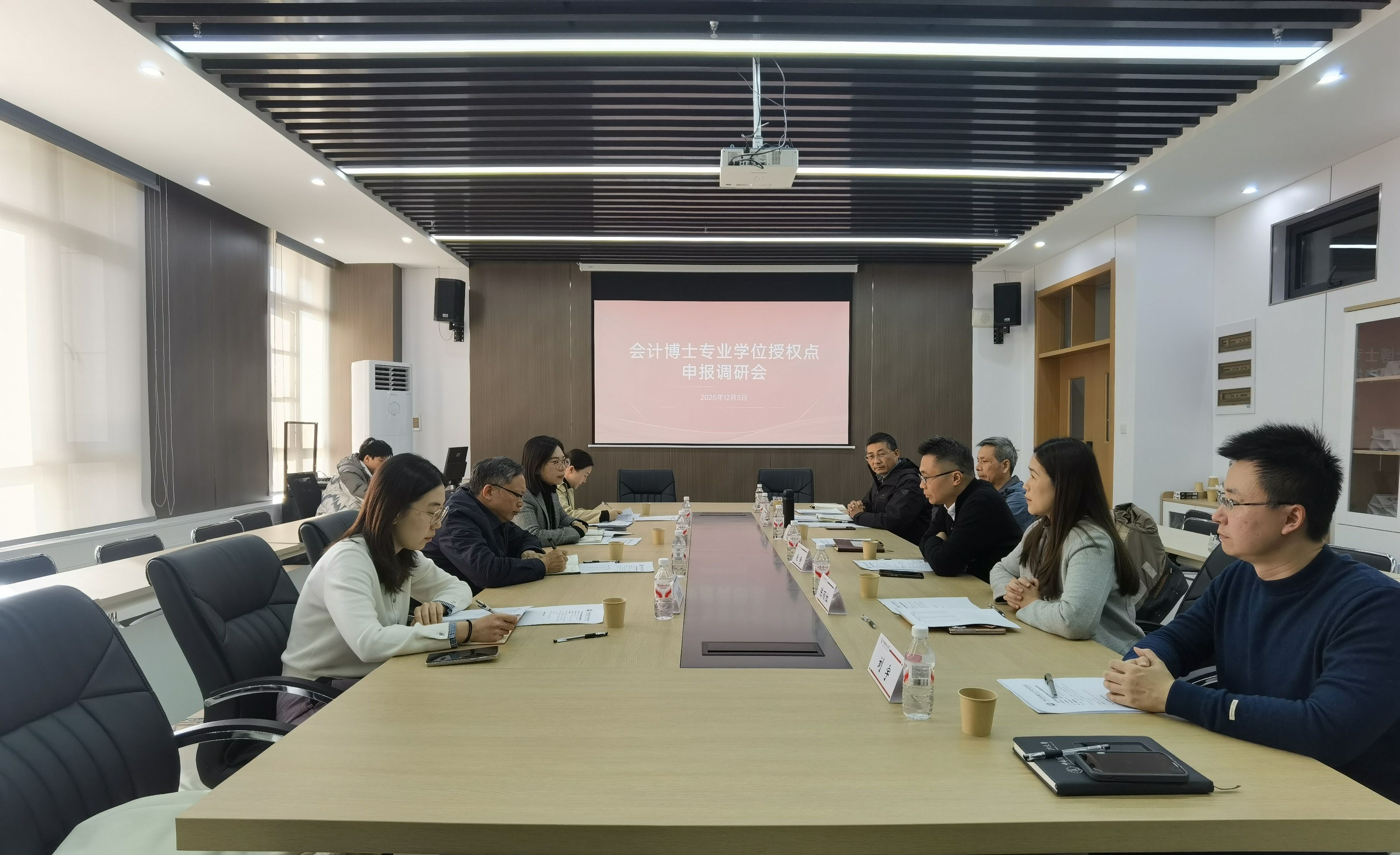 在交流研讨环节,研究生院、会计学院与会人员就申报材料组织、学科特色凝练、资源统筹等问题展开讨论,大家一致认为申报会计专博授权点是推动我校会计学科迈向更高层次、服务经济社会发展的重要契机,应进一步凝聚合力,凸显特色,推进申报工作。