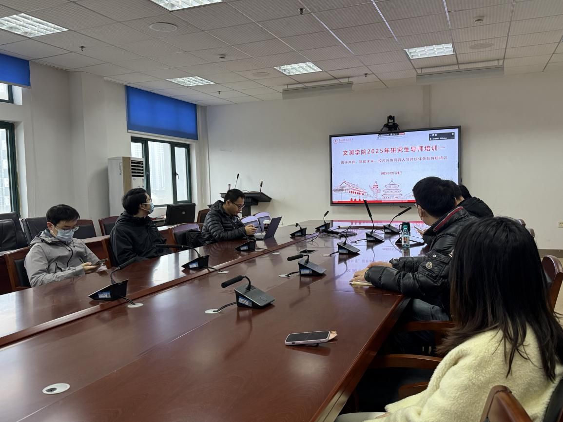 12月24日上午,文澜学院开展2025年第三期研究生导师培训会,主题为“携手共育,赋能未来——校内外协同育人导师伙伴关系构建培训”。培训会由院教师党支部书记方晶老师主持,行业导师金涛教授受邀线上参与,全院研究生导师参加此次培训。