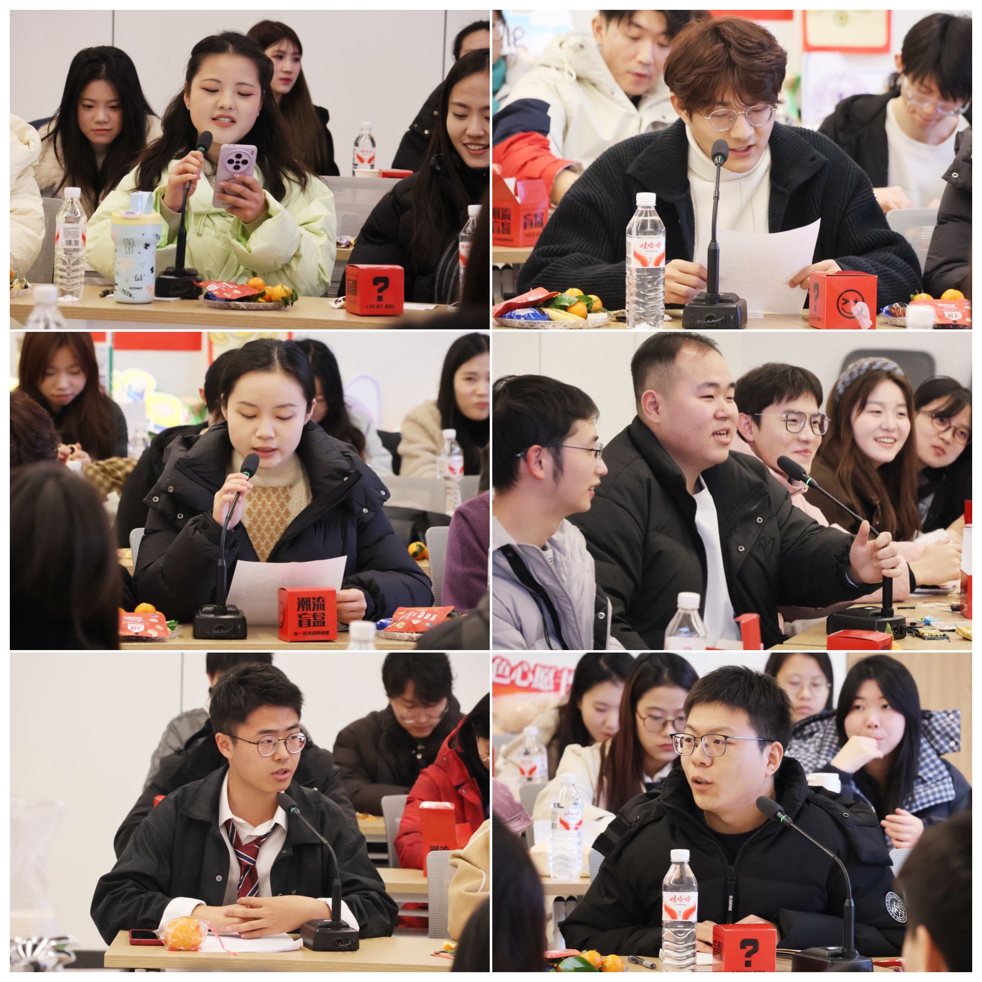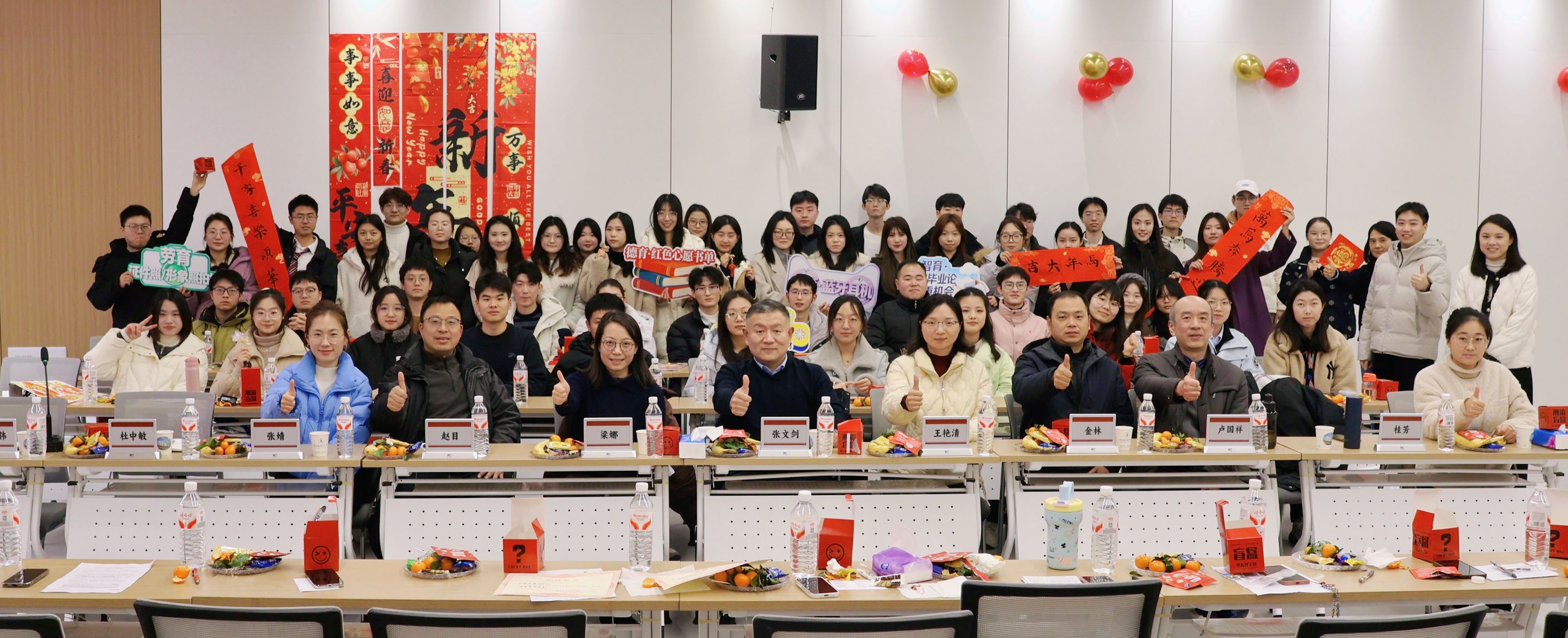 活动伊始,充满惊喜的签到互动环节拉开了茶话会的序幕。现场设置的盲盒墙吸引着每一位参会者,大家抽取专属新年纪念品的同时完成签到登记,一份份精致的小礼物让会议室里暖意融融,瞬间拉近了师生间的距离。