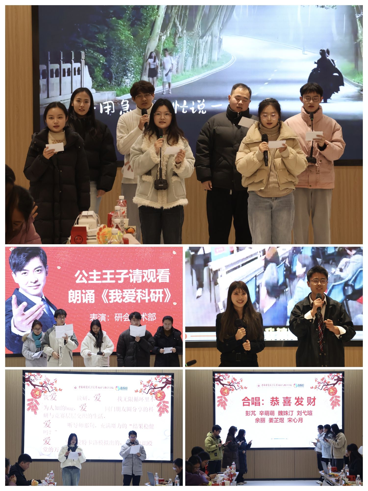 文艺展演环节精彩纷呈、亮点纷呈。研究生们带来了歌曲演唱、诗歌朗诵等丰富多彩的节目,悠扬的旋律、深情的演绎、激昂的朗诵,充分展现了统计与数学学院研究生积极向上、逐光而行的精神风貌,现场掌声与欢呼声此起彼伏。幸运抽奖与趣味互动环节将茶话会气氛推向高潮。抽奖环节精心设置“德、智、体、美、劳”五类特色奖项,既传递了学院对研究生的新春祝福,更蕴含着引导青年学子全面发展、践行“五育并举”理念的育人初心。