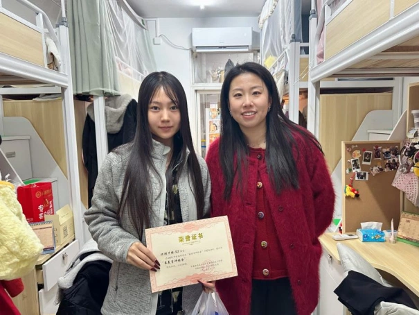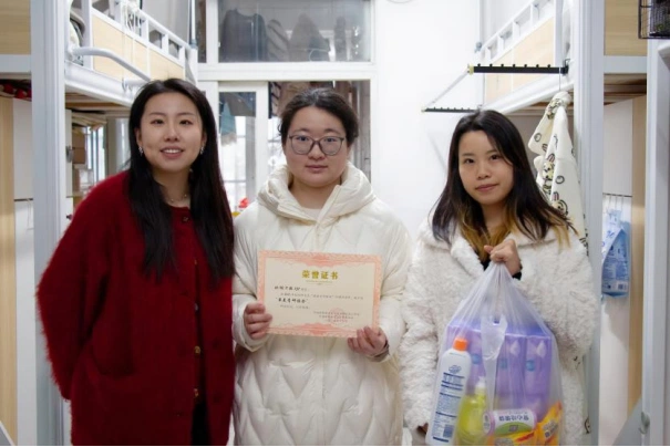 为深入践行“以学生为中心”的工作理念,巩固校级研究生“最美青研雅舍”评建成果,营造整洁雅致、积极向上的寝室文化氛围,1月4日下午,财政税务学院研究生辅导员钟唯老师、翟紫薇老师带队前往学院研究生寝室开展走访检查,并为获评校级“最美青研雅舍”的4间研究生寝室现场颁发奖状与奖品。