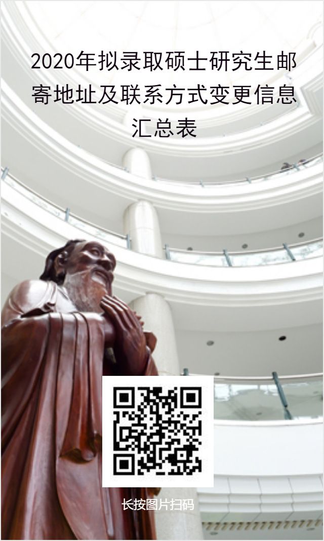 推免生、调剂拟录取考生,请于6月14日前通过扫描下方二维码填写本人接收录取通知书和调档函的邮寄地址。