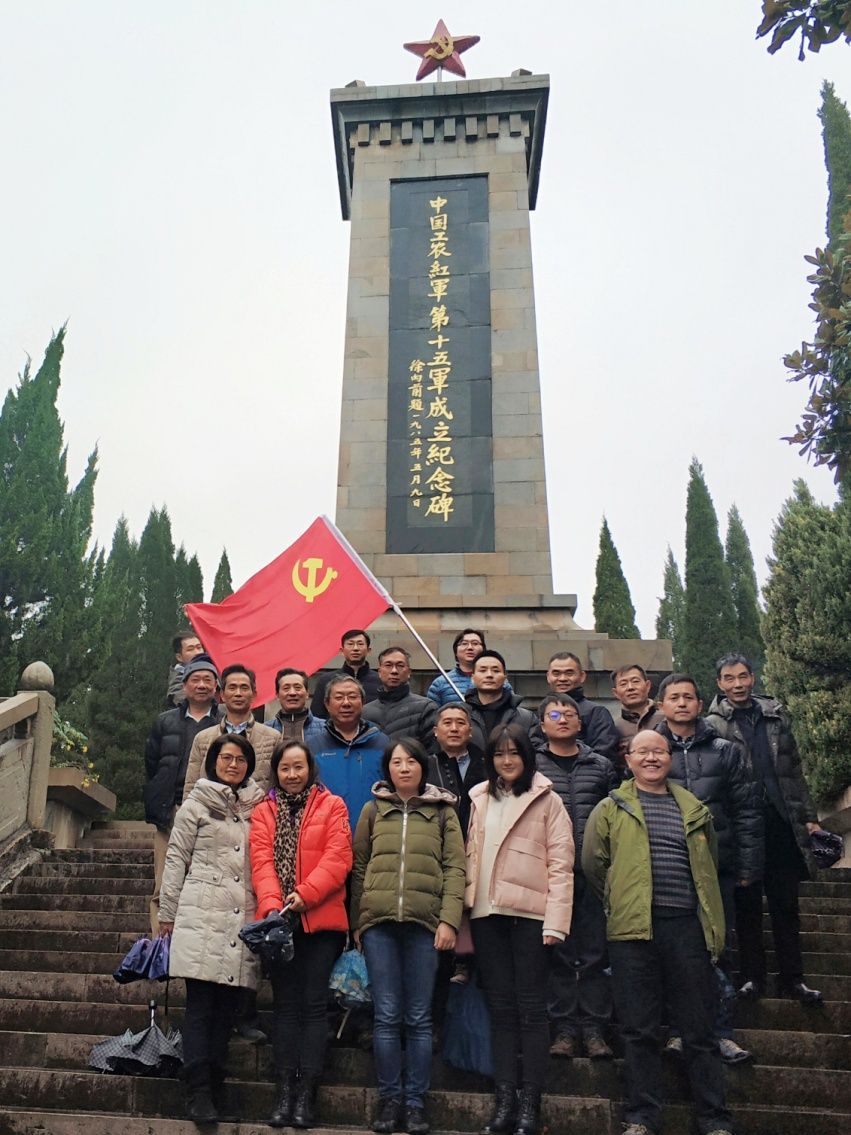 全体党员怀揣着沉重悼念之情,向烈士默哀,在纪念碑前重温入党誓词,“不忘初心、牢记使命”。