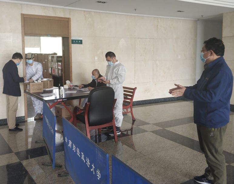“在微校园上填报线上申请,审核通过之后就可以直接领取,就像网购一样方便!”4月10日,在中原楼2楼会议室门口,来自各二级单位的防疫专班联系人陆续领到了开学准备期间首批返岗复工人员的防疫物资。