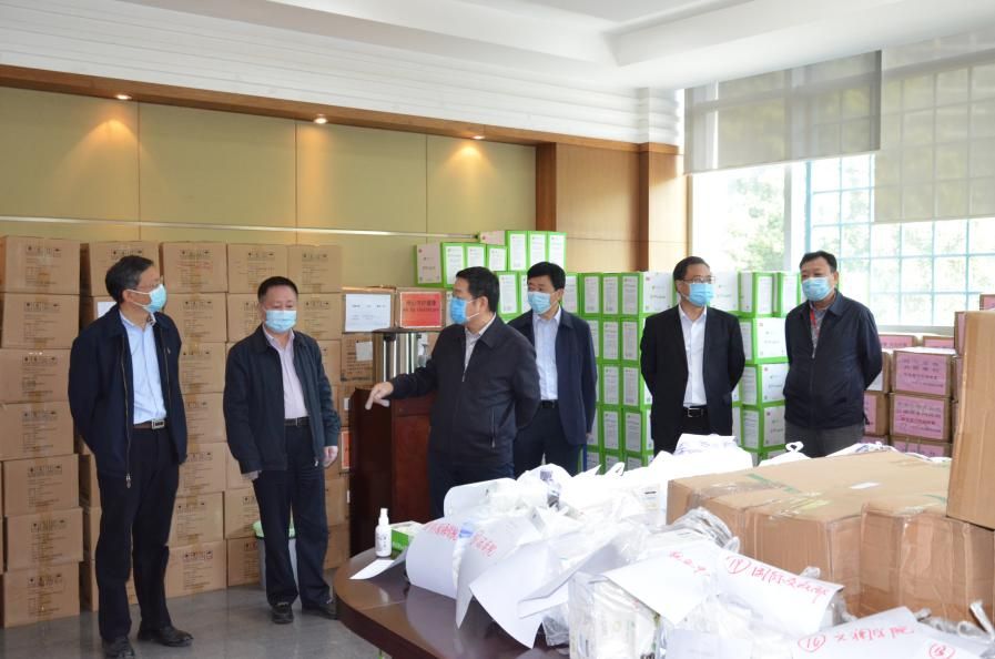 4月27日上午,学校党委书记栾永玉,党委副书记、校长杨灿明,党委副书记、纪委书记侯振发,党委常委、副校长闫平,党委常委、副校长覃红,副校长邹进文,党委常委、副校长申祖武一行前往学校防疫物资仓库现场检查了防疫物资管理情况,并亲自为返岗复工教职工和留校学生代表发放了口罩、洗手液等防疫物资。