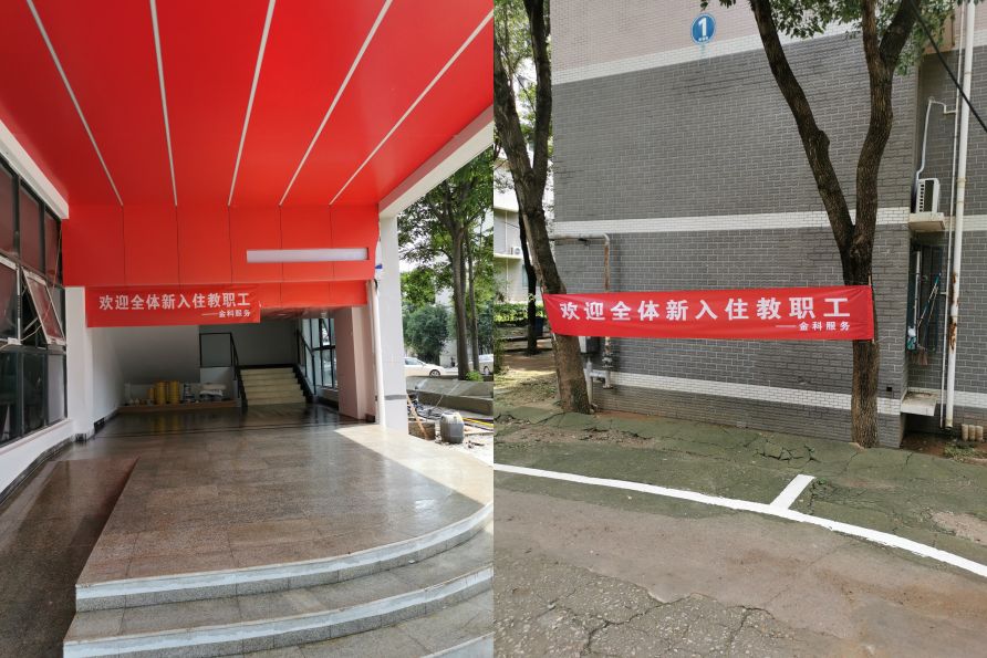 为了给新进教职工提供舒适的居住环境,资产部安排物业对每一间待分配住房进行了清洁整理,对退房时堆放的垃圾、杂物进行了彻底清理。周转房所在片区拉起了“欢迎全体新入住教职工”的欢迎横幅,每间房间上都粘贴了《入住温馨提示》。对于部分应届毕业和来自外地的新进教职工提出的分配住房之前的行李安置问题,资产管理部协调出一套空房,供有需求的教职工再分配到住房前临时存放行李。这一系列举措为新进教职工提供了舒适的居住环境及“到家”般的贴心服务,让大家能够安心入职,放心工作。