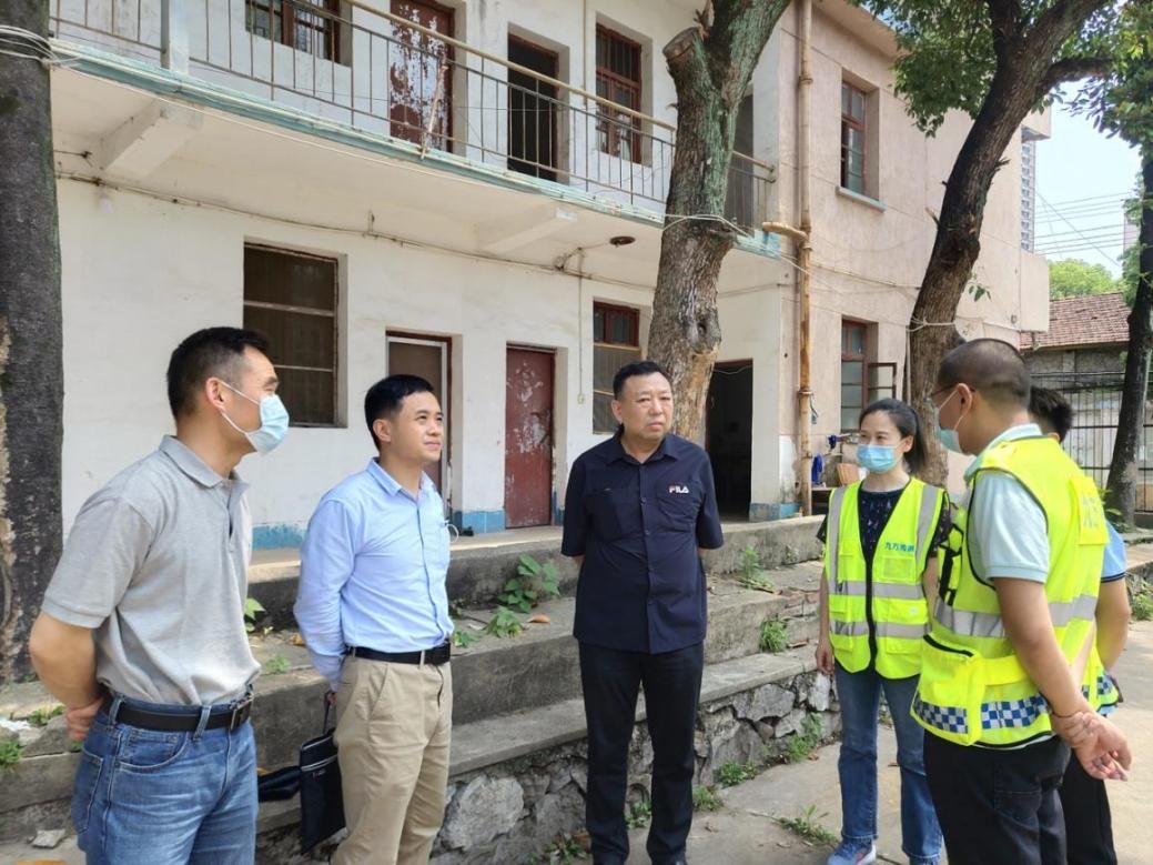 纸坊校区位于武汉市江夏区纸坊大街983号,系2003年经教育部批准接收的原湖北省机电学校地块,其中一号学生宿舍楼2004年经鉴定属于C级危房(夏房鉴字2004第132号)。闫平一行实地巡查纸坊校区校舍安全情况、资产使用情况,与第三方安全鉴定单位对危房校舍进行外围勘察、沟通鉴定方案,并提出处理建议。