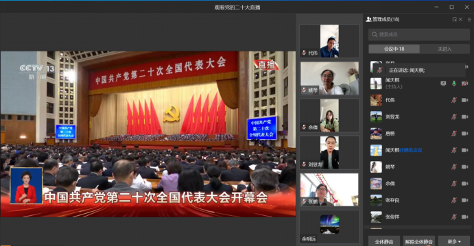 (通讯员 刘月)2022年10月16日上午10时,中国共产党第二十次全国代表大会在北京人民大会堂隆重开幕,习近平总书记代表第十九届中央委员会向大会作报告。资产管理部通过视频会议的形式线上组织观看了大会盛况,部门全体员工认真聆听报告。