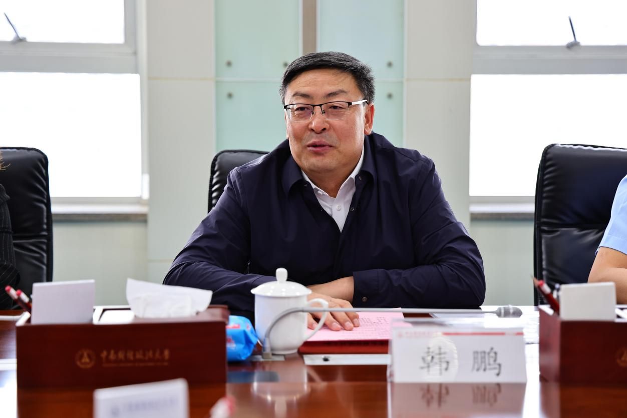 陈柏峰代表学校对韩鹏一行的到访表示热烈欢迎,并简要介绍了学校基本情况。他表示,希望两校在服务“双一流”建设的资源保障体系方面深化交流合作,相互学习借鉴。