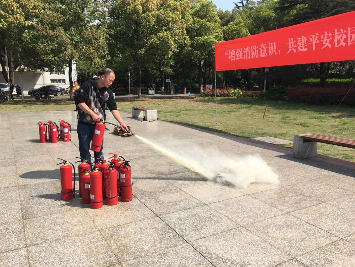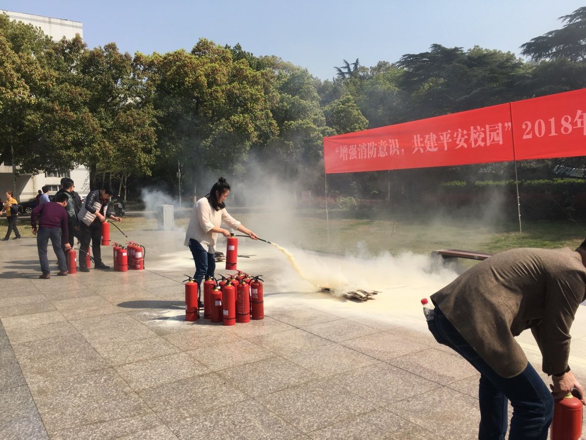 此次活动由火情模拟演练、消防器材现场操作两个部分组成。根据演练方案,活动首先由保卫部主管首义校区消防安全的徐主任为在场的商户代表进行消防器材的使用讲解。徐主任一边细心地讲解操作步骤,一边手提灭火器为在场人员演示如何拔掉保险栓,然后对着火苗根部用力按压阀门,以达到迅速扑灭火焰的效果。