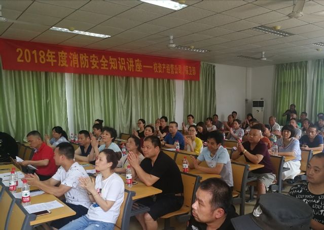 为进一步提高广大教职工、租赁商户的安全意识,普及安全知识,确保学校安全生产形势的持续稳定,资产经营公司会同保卫部于5月17日下午举办了2018年度消防安全知识培训活动。活动邀请到了湖北省消防协会王好教官为大家精彩讲解消防安全知识。资产经营公司、保卫部相关工作人员以及商户代表共计80余人参加了培训。