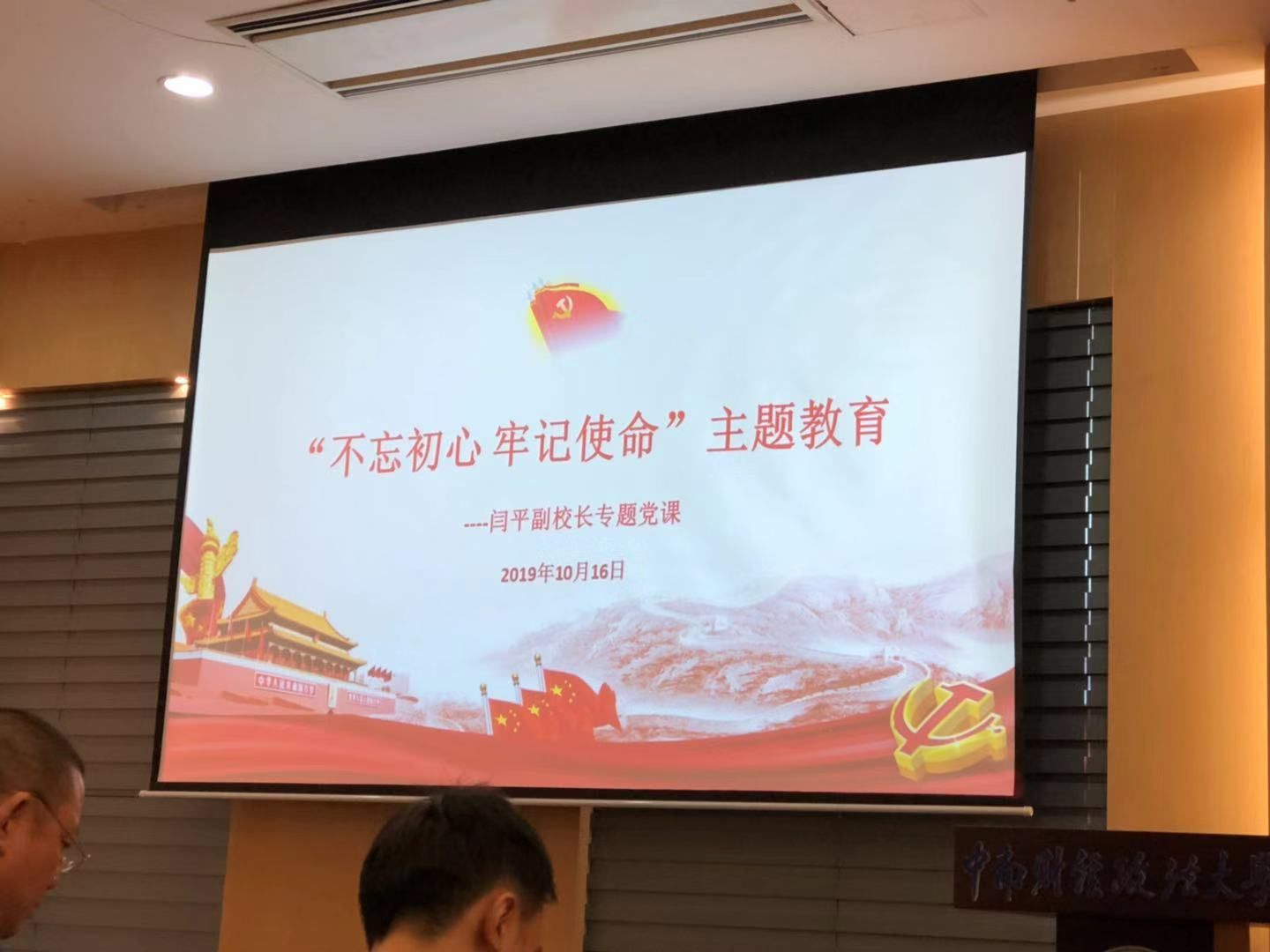 2019年10月16日下午,资产经营公司组织党员、业务骨干参加由副校长闫平主讲的“不忘初心、牢记使命”主题教育专题党课。