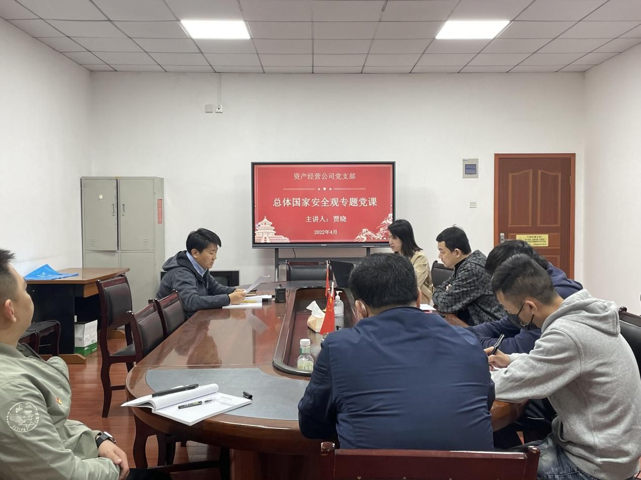 2022年4月15日,按照学校党委统一部署,资产经营公司党支部组织全体党员和入党积极分子在公司会议室集中开展了4月份支部主题党日暨“4•15”全民国家安全教育日宣教活动,会议由公司副总经理贾晓主持。